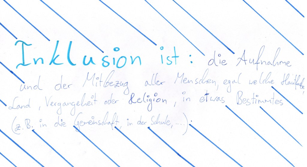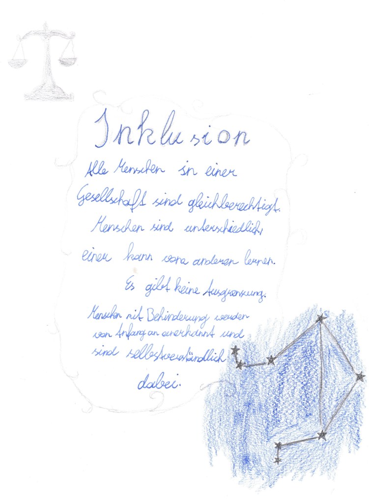 Von Barbara So, hier endet unser großes Thema INKLUSION!!! Wir sind stolz auf unsere Bilder und Texte und hoffen, dass sie euch gefallen und auch ihr jetzt genauer wisst, was Inklusion und Integration ist!!!